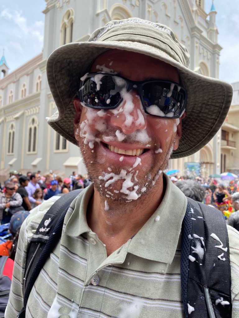 See all of the foam? A major part of the fun is spraying people with foam. Seems that during carnival, you can do crazy things? No one complains about being sprayed with foam or doused with water. The kids especially enjoy it.